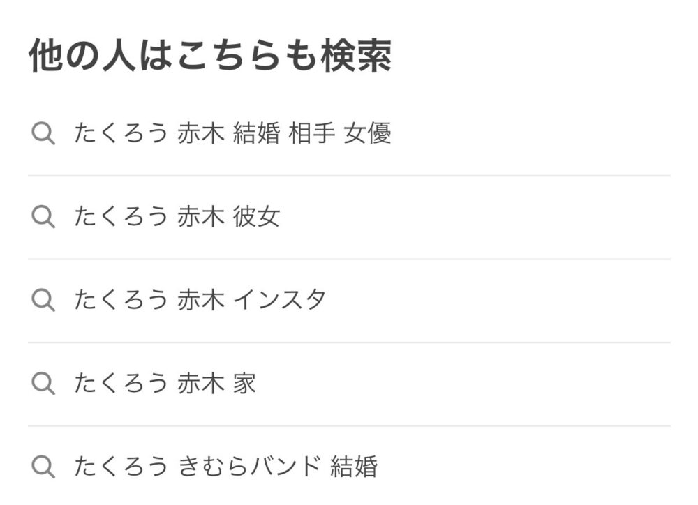また、検索すると、『たくろう 赤木 嫁 女優』と検索されています。